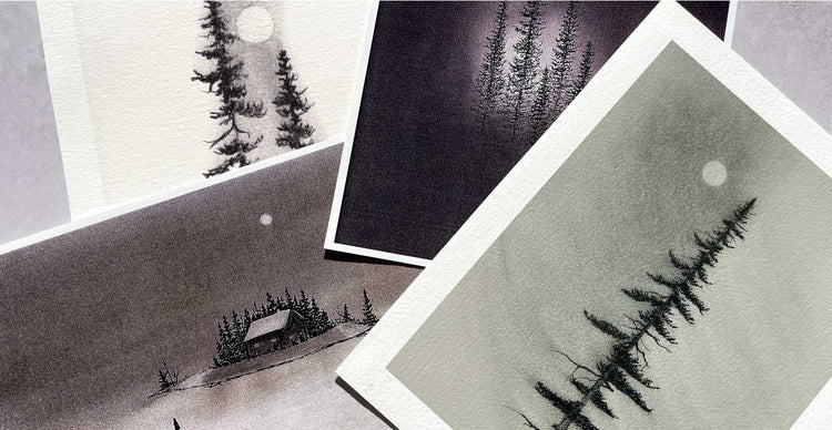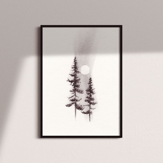 Two Pines Charcoal Drawing Print